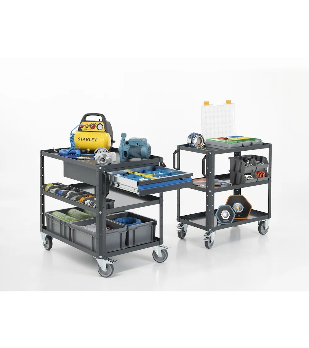 בנוסף, ניתן לשדרג את העגלה עם מגירה נוספת או משטח אנטי־החלקה, לשיפור הארגון והנוחות.