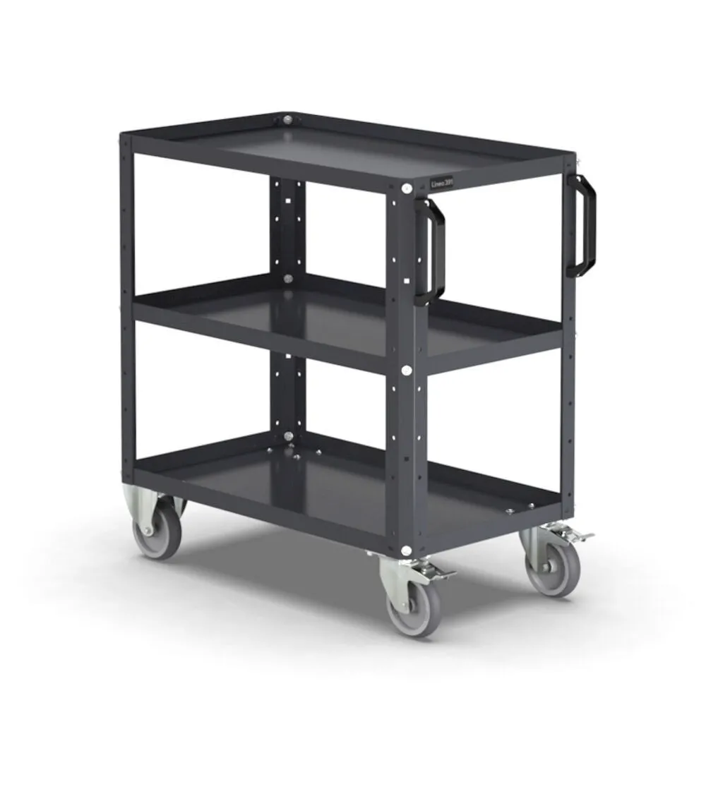 עגלה לסדנה Linea 391 דגם 391C05 היא פתרון נייד מקצועי עם שטח אחסון גדול וכושר נשיאה גבוה של 330 ק״ג. העגלה כוללת 3 מדפים עם שפה מוגבהת למניעת נפילת ציוד, כאשר המדף האמצעי מתכוונן בגובה להתאמה לצרכים שונים. המבנה עשוי פלדה חזקה בצבע אפור אנתרציט (RAL 7016), ומצויד ב־4 גלגלים איכותיים בקוטר 125 מ״מ, מתוכם שניים עם בלם, המאפשרים תנועה חלקה ויציבות מלאה. בנוסף, ניתן לשדרג עם מגירה או משטח אנטי־החלקה. פתרון אידיאלי לסדנאות, מוסכים וסביבות עבודה מקצועיות הדורשות ניידות, סדר ועמידות גבוהה.