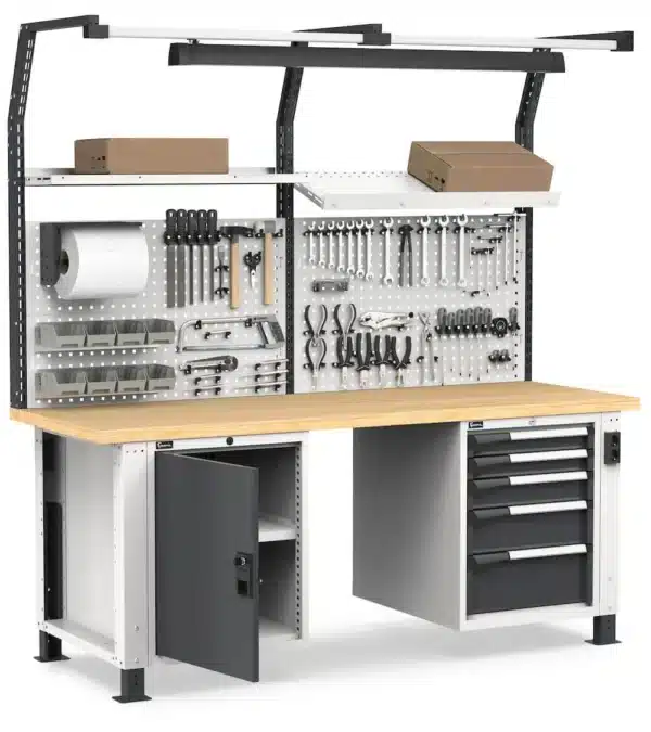 Master Professional Workbench הוא שולחן עבודה תעשייתי מתקדם, המשלב שלדת פלדה יציבה עם מגירות Master בעלות כושר נשיאה גבוה וגמישות תפעולית.