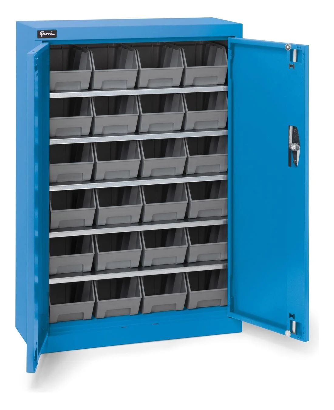 PERFOMAK05 הוא ארון אחסון תעשייתי איכותי מבית FAMI, הכולל 24 קופסאות Picking Box Air לניהול מסודר ויעיל של חלקי C-Parts, רכיבים, ברגים וכלי עבודה קטנים.