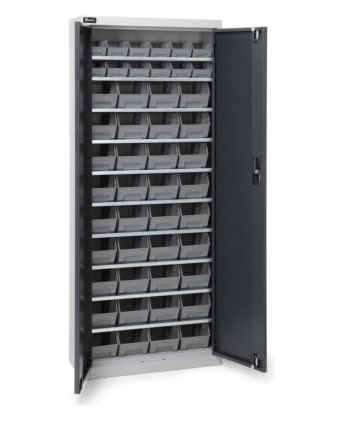 הארון PERFOMAK08 מבית FAMI הוא פתרון אחסון תעשייתי מתקדם הכולל 48 קופסאות Picking Box Air, המיועדות לארגון יעיל של חלקי C-Parts ופריטי תחזוקה.
