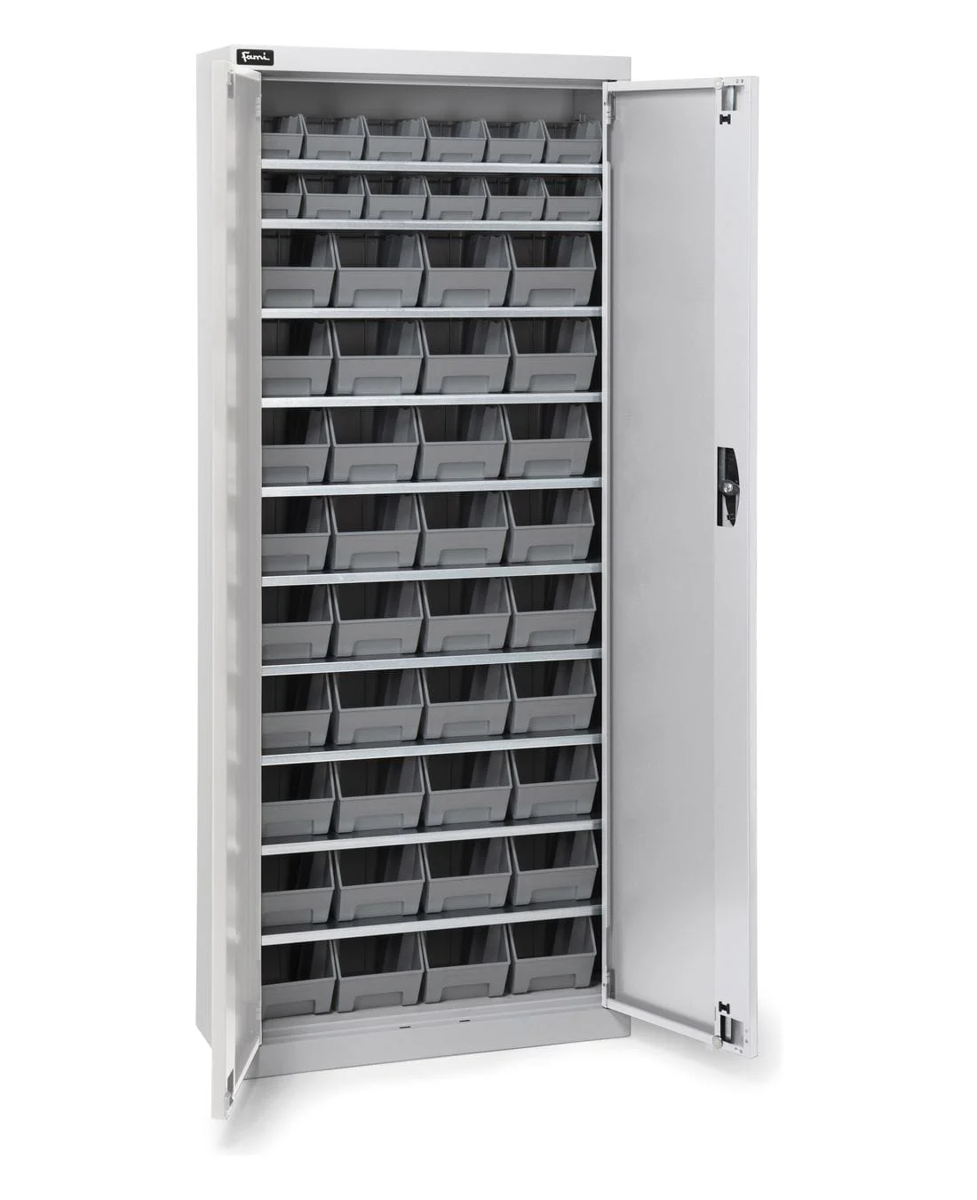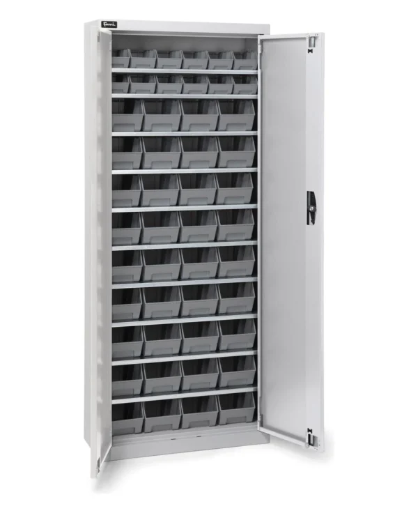 הארון PERFOMAK09 מבית FAMI הוא מערכת אחסון תעשייתית המשלבת מבנה פלדה חזק עם 48 ארקליות Picking Box Air לארגון חלקי C-Parts ורכיבים טכניים.