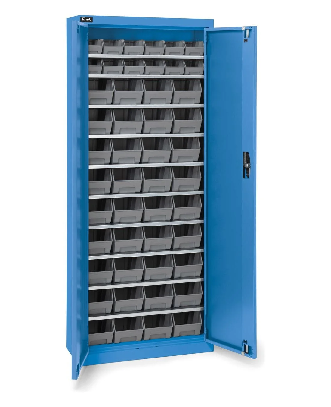 הארון עשוי פלדה איכותית בצבע כחול תעשייתי (RAL 5012) ומגיע עם דלתות מתכת סגורות, המגנות על התכולה ושומרות על סביבת עבודה נקייה ומסודרת.