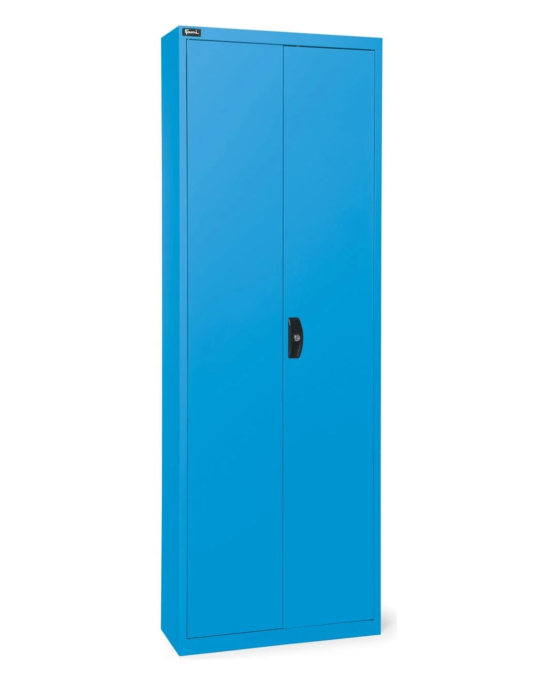 הארון משלב עיצוב מודרני בצבע כחול (RAL 5012), מבנה פלדה מחוזק ודלתות סגירה מלאות לשמירה על סדר, נגישות והגנה על תכולה.