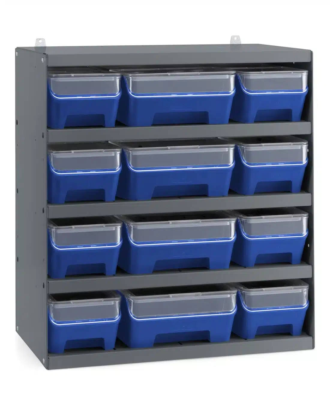 המערכת כוללת 12 קופסאות אחסון, מסילות הזזה, מכסים שקופים ו־פאנלים קדמיים, המאפשרים עבודה מסודרת, נוחה ובטוחה בכל סביבה מקצועית – סדנאות, מעבדות, מחסנים ועמדות שירות.