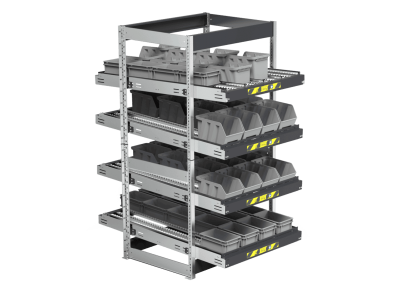 השילוב בין שיפוע מתכוונן, גלילים איכותיים ועבודה לפי FIFO מאפשר ייעול מלאי, חיסכון בזמן ושיפור משמעותי בפרודוקטיביות.